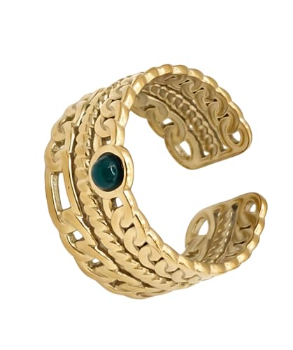 Generic - خاتم من الستانلس ستيل مطلي بالذهب عيار 18 قيراط بتصميم كوري للنساء والزوجة والعشاق وافراد العائلة بتصميم كوري من الستانلس ستيل مطلي بالذهب عيار 18 قيراط - فتحة قابلة للتعديل