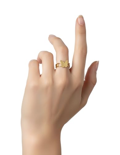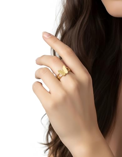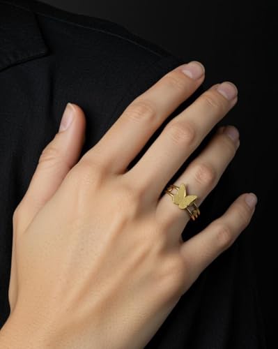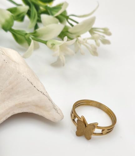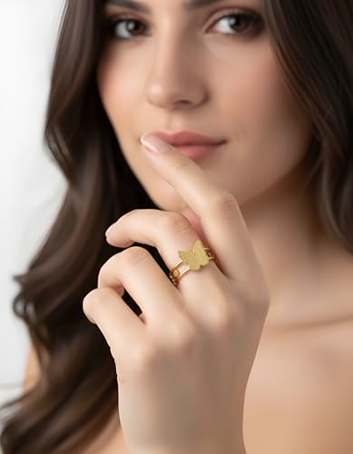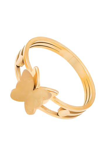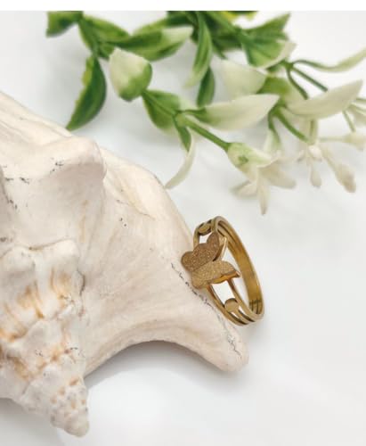 Generic - خاتم بتصميم فراشة للنساء بتصميم عصري مناسب كهدية لعيد الحب والزوجة والحبيب وافراد العائلة والصديقة، مصنوع من الستانلس ستيل مطلي بالذهب عيار 18 قيراط وعيد الحب وعيد الام - مقاس 17