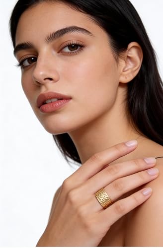 Generic - خاتم C l i o And Style كوري هدية للنساء في يوم الموضة للزوجة والحبيب وافراد العائلة والأخت الصالحة من الستانلس ستيل مطلي بالذهب عيار 18 قيراط - فتحة قابلة للتعديل