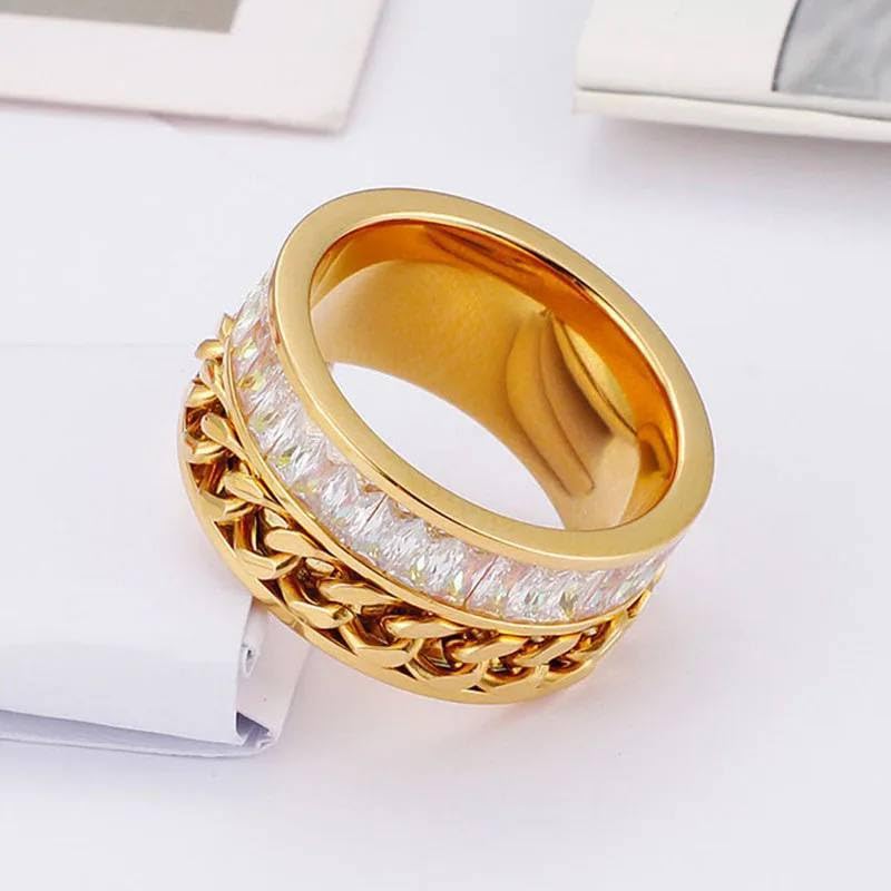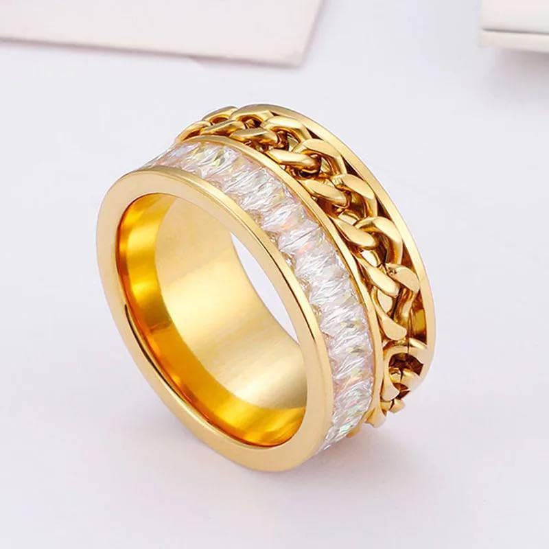 Generic - خاتم كلاسيكي فايكنج رون من الستانلس ستيل مطلي بالذهب عيار 18 قيراط للنساء والرجال هدية رائعة لعيد الام وعيد الحب - مقاس 7 US