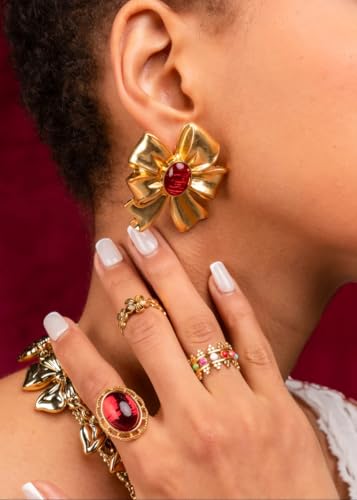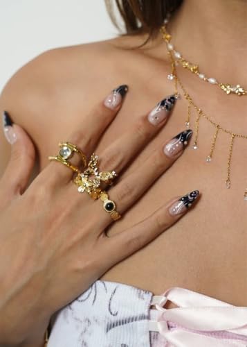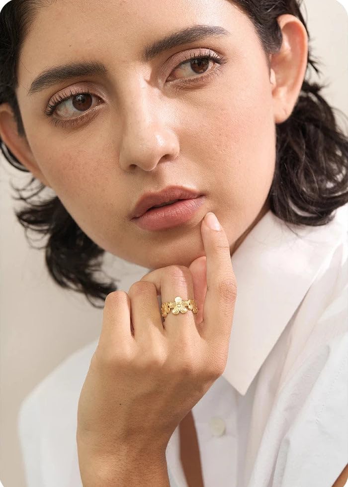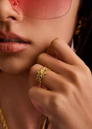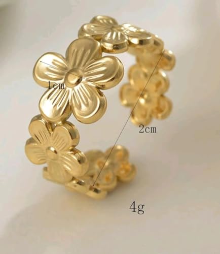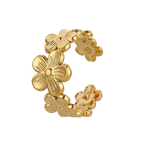 Generic - خاتم بتصميم عنقود زهري مستوحى من الأدغال، مصنوع من الفولاذ المقاوم للصدأ ومطلي بالذهب عيار 18 – قابل للتعديل