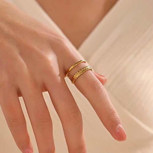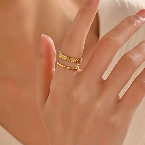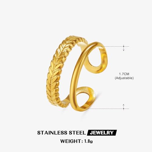 Generic - خاتم مزدوج من الستانلس ستيل مطلي بالذهب عيار 18 قيراط للنساء، هدية رائعة للصداقة - قابل للتعديل