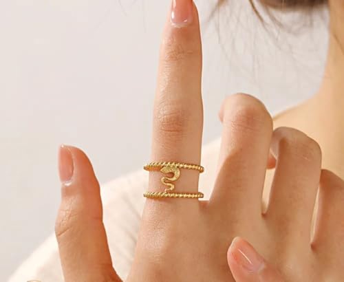 Generic - خاتم مزدوج بتصميم ثعبان من الفولاذ المقاوم للصدأ بطلاء ذهبي عيار 18 قيراط للنساء وهدايا الصداقة الرائعة لعيد الحب وعيد الأم بتصميم قابل للتعديل