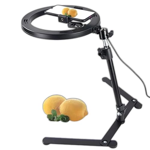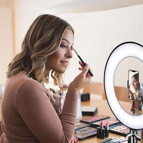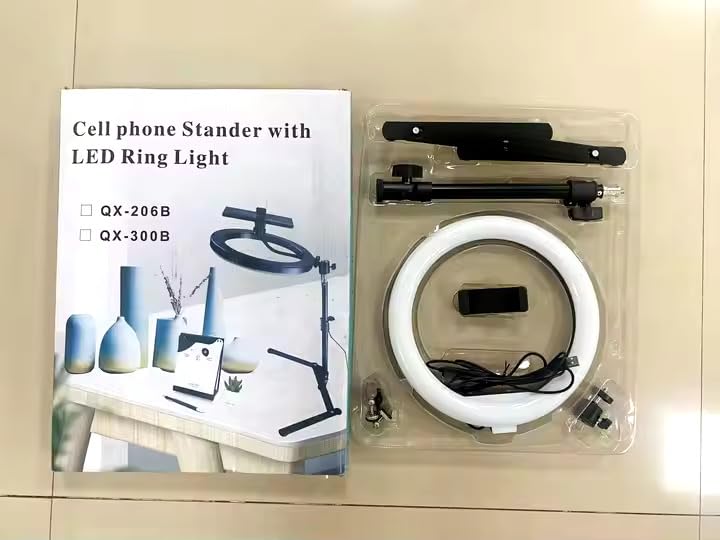 Generic - مصباح حلقي QX-206B (26 سم) للتصوير الفوتوغرافي الاحترافي، USB، مصباح حلقي LED مع حامل ثلاثي القوائم قابل للتعديل وحامل جوال، 3 اوضاع اضاءة و10 مستويات سطوع للبث المباشر والمكياج واليوتيوب