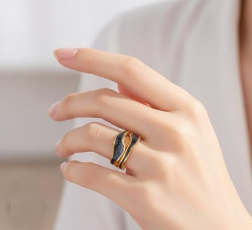 Generic - خاتم فلافيا مطلي بالذهب عيار 18 قيراط من الستانلس ستيل مطلي بالذهب عيار 18 قيراط للنساء والزوجة والعشاق والعشاق والعائلة