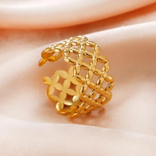 Generic - خاتم على شكل زهرة من الستانلس ستيل مطلي بالذهب عيار 18 قيراط للنساء هدية رائعة للصداقة - قابل للتعديل