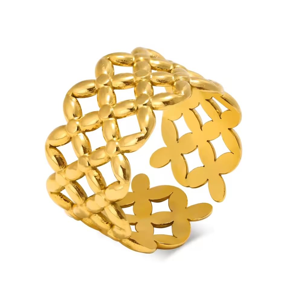 Generic - خاتم على شكل زهرة من الفولاذ مقاوم للصدأ مطلي بالذهب عيار 18 قيراط للنساء لعيد الحب - قابل للتعديل