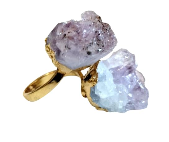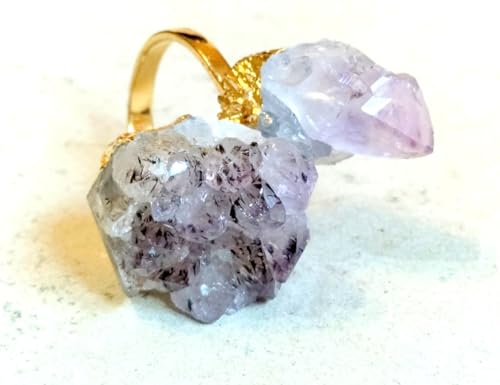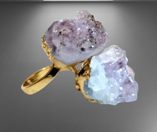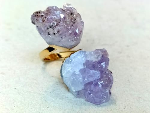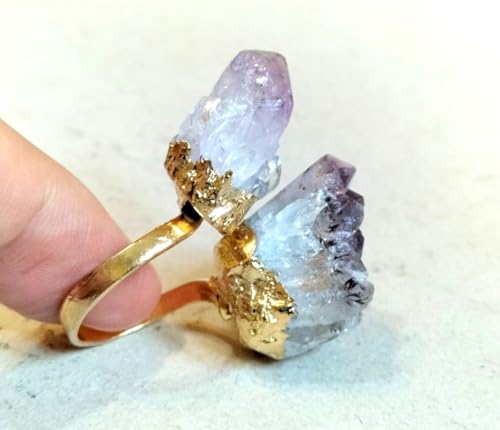 Generic - خاتم ذهبي اللون بحجر مزدوج - قطعتين طبيعي ( أماتيست ) خام رائع مناسب لجميع المقاسات والمناسبات وبسعر مخفض، احجار كريمة