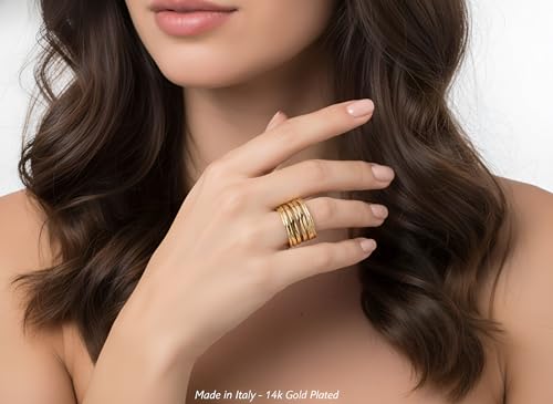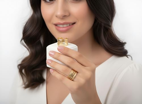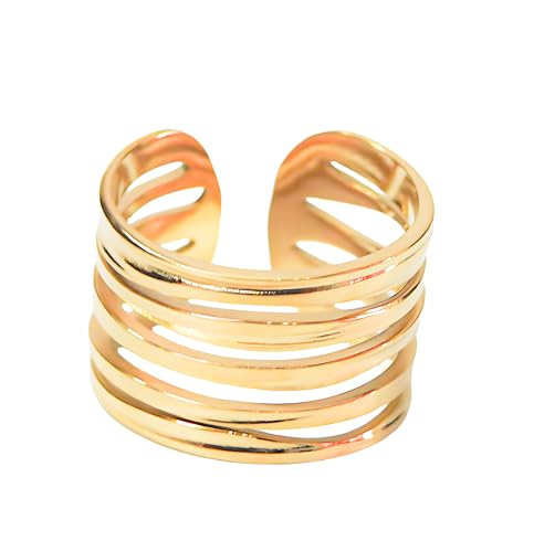 Generic - خاتم من الستانلس ستيل مطلي بالذهب عيار 18 قيراط بتصميم عصري مناسب كهدية للنساء والزوجة والحبيب وافراد العائلة والصديقة - فتحة قابلة للتعديل