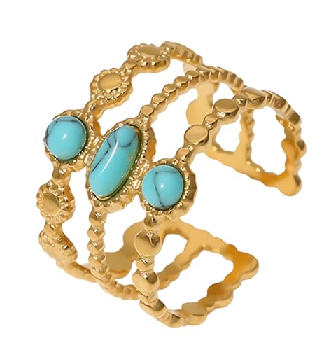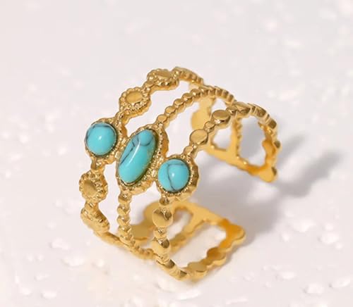Generic - خاتم ليراي بتصميم كوري من الفولاذ المقاوم للصدأ مطلي بالذهب عيار 18 قيراط مناسب كهدية للنساء والزوجة والعائلة والأخت الودودة والصديقة - تصميم بفتحة قابلة للتعديل