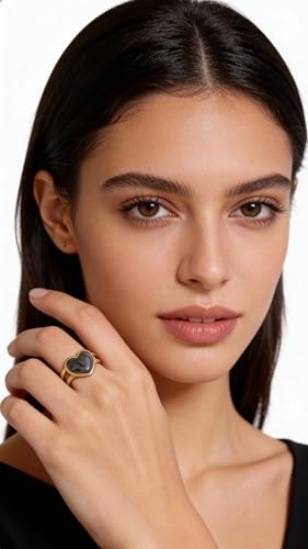 Generic - خاتم L o v e M e اسود على الطراز الكوري هدية للنساء في يوم الموضة للزوجة والحبيب وافراد العائلة والأخت الصالحة من الستانلس ستيل مطلي بالذهب عيار 18 قيراط - فتحة قابلة للتعديل