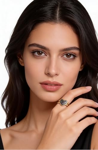 Generic - خاتم ال او في اي ام اي بتصميم كوري اسود للنساء والزوجة والعشاق وافراد العائلة مصنوع من الستانلس ستيل مطلي بالذهب عيار 18 قيراط - فتحة قابلة للتعديل