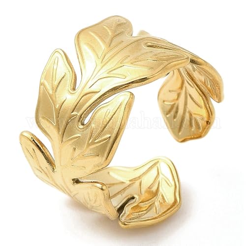 Generic - خاتم على شكل ورقة شجر من الفولاذ المقاوم للصدأ مطلي بالذهب عيار 18 قيراط للنساء، هدية رائعة للصداقة وعيد الحب - قابل للتعديل