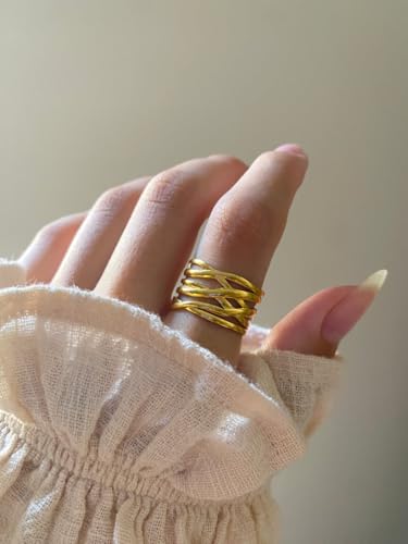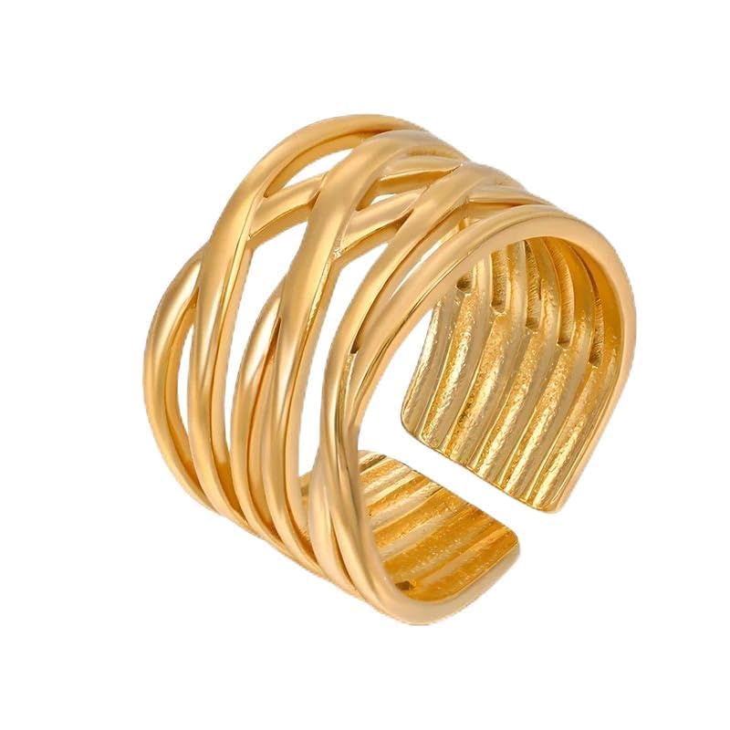 Generic - خاتم مانهاتن ستانلس ستيل مطلي بالذهب عيار 18 قيراط - قابل للتعديل