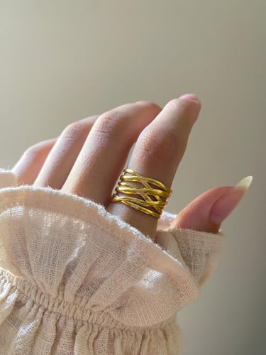 Generic - خاتم مانهاتن ستانلس ستيل مطلي بالذهب عيار 18 قيراط هدية عيد الحب قابل للتعديل