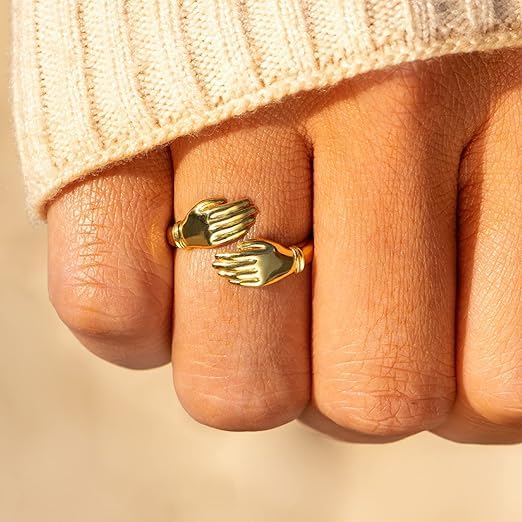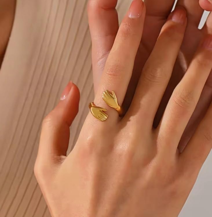 Generic - خاتم انيق من الستانلس ستيل مطلي بالذهب عيار 18 قيراط للنساء مناسب كهدية لعيد الام - قابل للتعديل