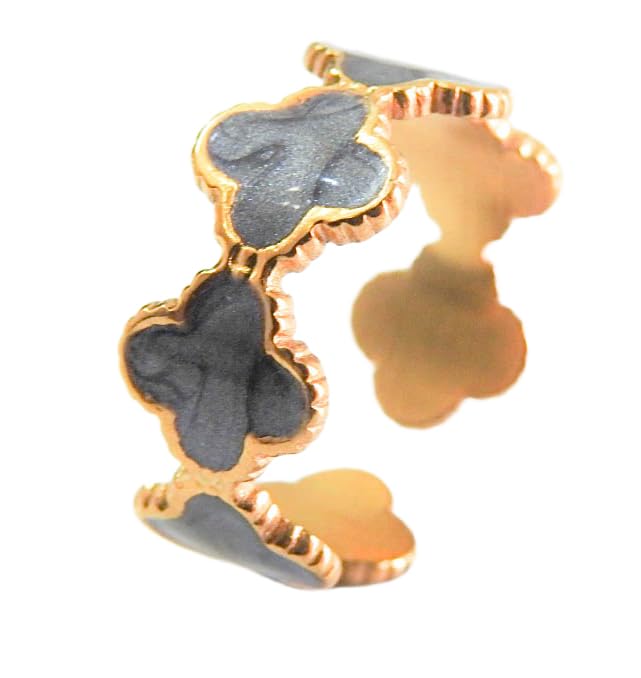 Generic - خاتم بريزنت بنمط كوري مخطط للنساء بتصميم عصري للزوجة والعائلة والأخت من الفولاذ المقام للصدأ المطلي بالذهب عيار 18 قيراط مزود بفتحة قابلة للتعديل
