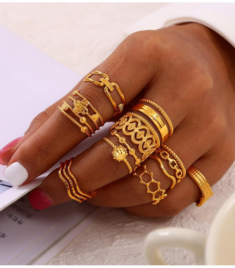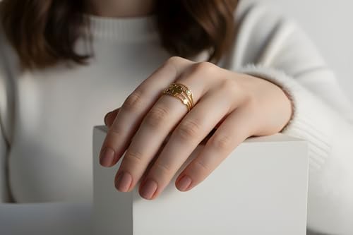 Generic - مجموعة خواتم سارة انجد ستايل مصنوعة من الفولاذ المقاوم للصدأ، مطلية بالذهب عيار 18 قيراط مع فتحة قابلة للتعديل للنساء في يوم الموضة للزوجة والحبيبة والأسرة والأخت الطيبة والصديقة