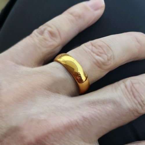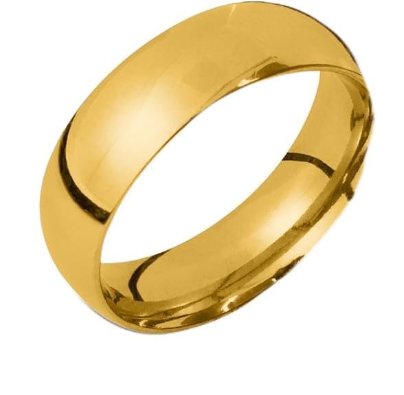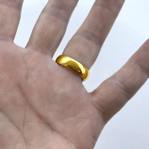 Generic - خاتم بسيط لامع من الستانلس ستيل بعرض 6 ملم للرجال والنساء - مقاس 17 مطلي بالذهب