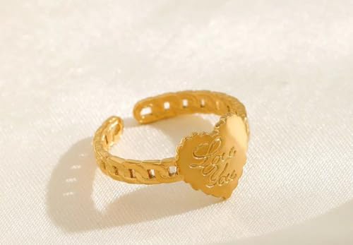Generic - خاتم بسيط مفتوح على شكل قلب من الستانلس ستيل مطلي بالذهب عيار 18 قيراط للنساء هدية عيد الحب - قابل للتعديل