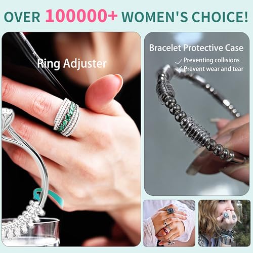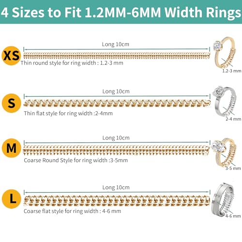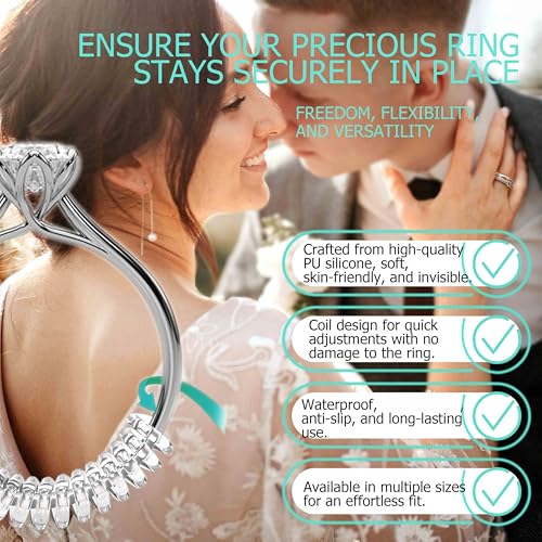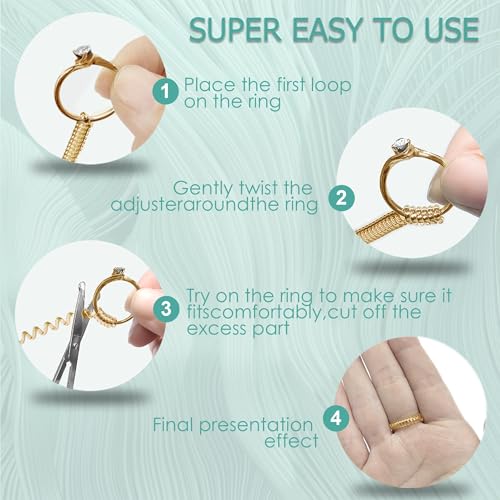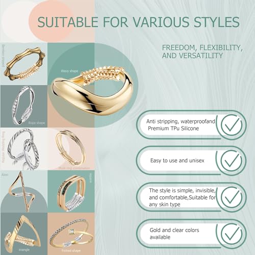 Kueroami - أداة ضبط مقاس الخاتم للخواتم الفضفاضة، مجموعة شد لولبية من السيليكون مع قطعة قماش تلميع من كوروامي (شفاف وذهبي)