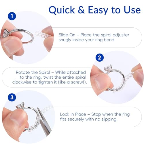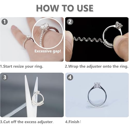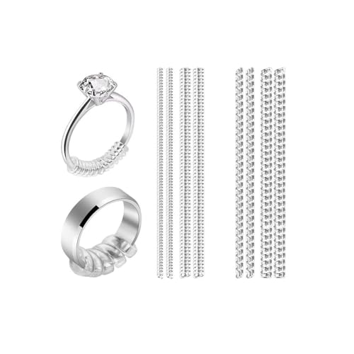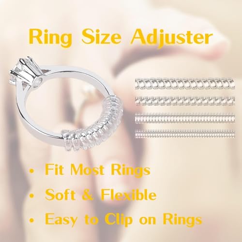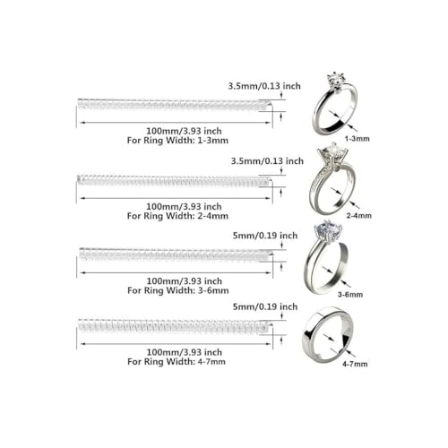 Lonimia - مجموعة ادوات ضبط مقاس الخواتم الفضفاضة من 8 قطع شفافة غير مرئية للنساء والرجال والفتيات، حلقة مجوهرات حلزونية واقية لتقليل الحجم، مقاسين / تصميمين، طول 10 سم/3.93 انش