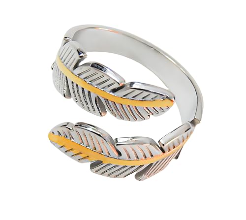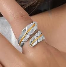 Generic - خاتم بلونين من الريش والاسلوب هدية للنساء والزوجة والحبيب وافراد العائلة والاخت الطيبة والصديقة من الستانلس ستيل مطلي بالذهب عيار 18 قيراط - فتحة قابلة للتعديل