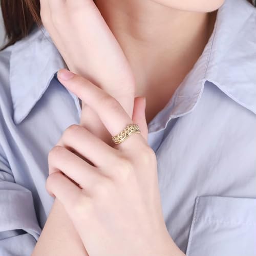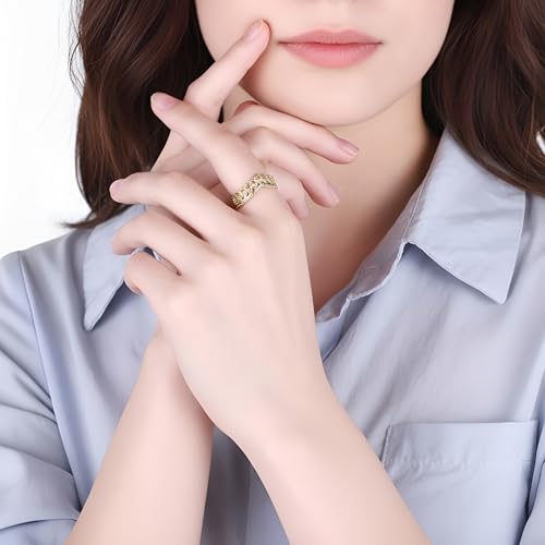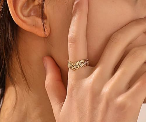 Generic - خاتم كرون عتيق وهدية انيقة للنساء في عيد الميلاد والزوجة والحبيب وافراد العائلة والأخت الصالحة والصديقة، ستانلس ستيل مطلي بالذهب عيار 18 قيراط - فتحة قابلة للتعديل