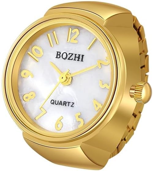 Generic - ساعة خاتم، ساعة يد كوارتز ذهبية بمينا أبيض، هيكل دائري، سوار مطاطي، نمط رسمي