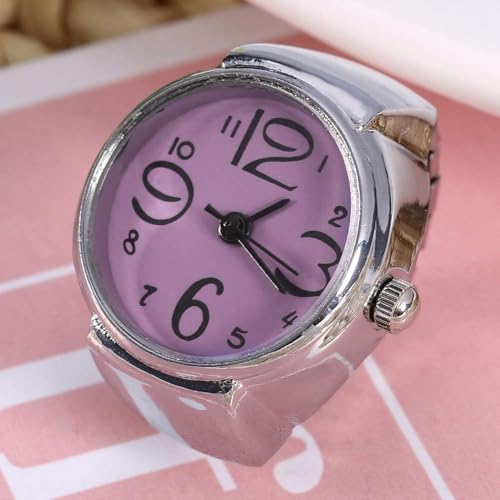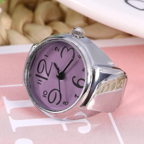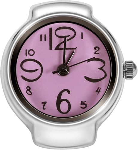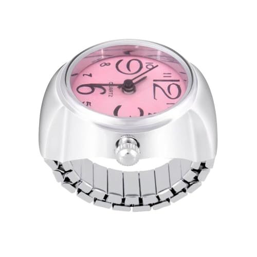 Generic - ساعة حلقية بمينا بينك وسوار مطاطي وحركة كوارتز بلون فضي