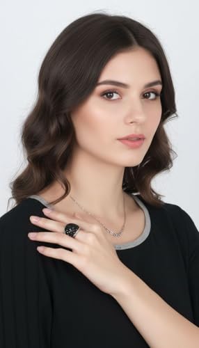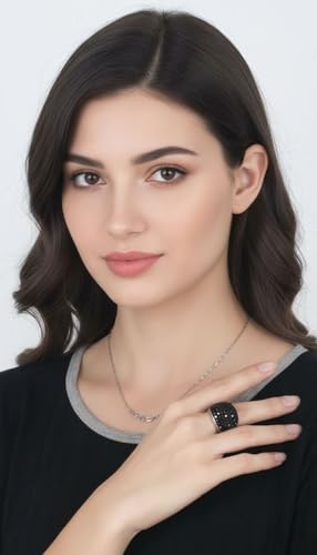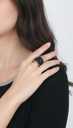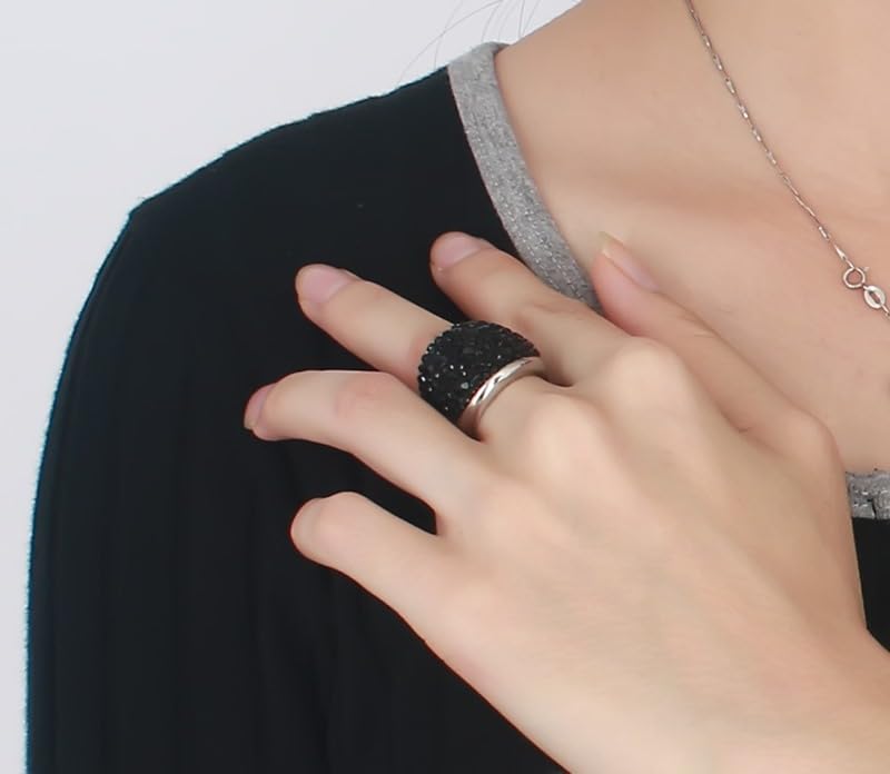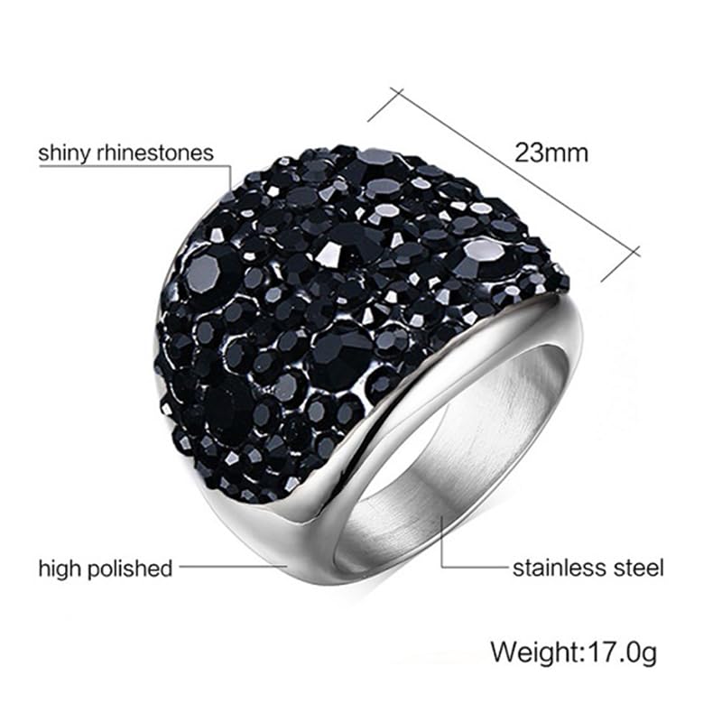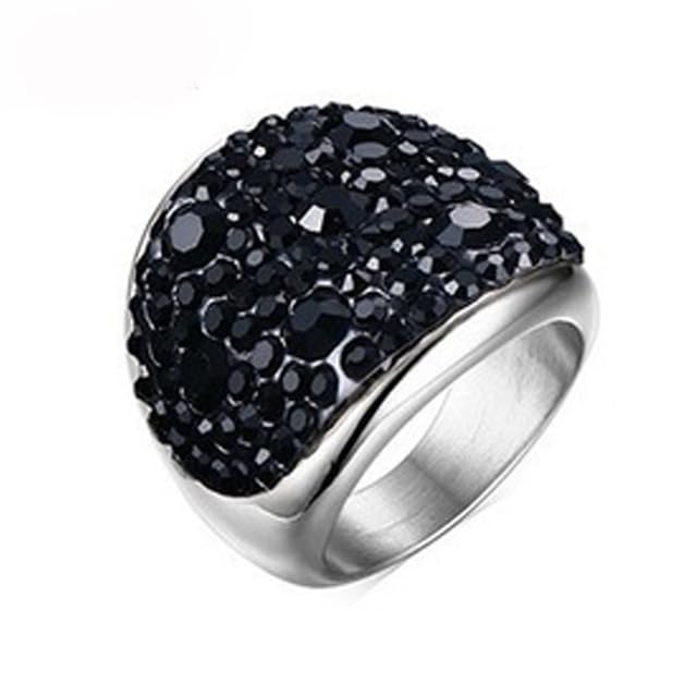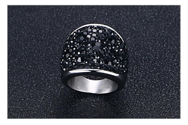 Generic - خاتم زفاف من الكريستال الاسود بتصميم عصري للنساء والزوجة والحبيب والعائلة والصديقة الصالحة (مقاس 7US) - ستانلس ستيل مطلي بالذهب عيار 18 قيراط