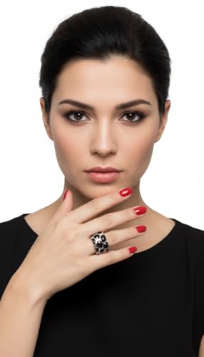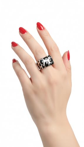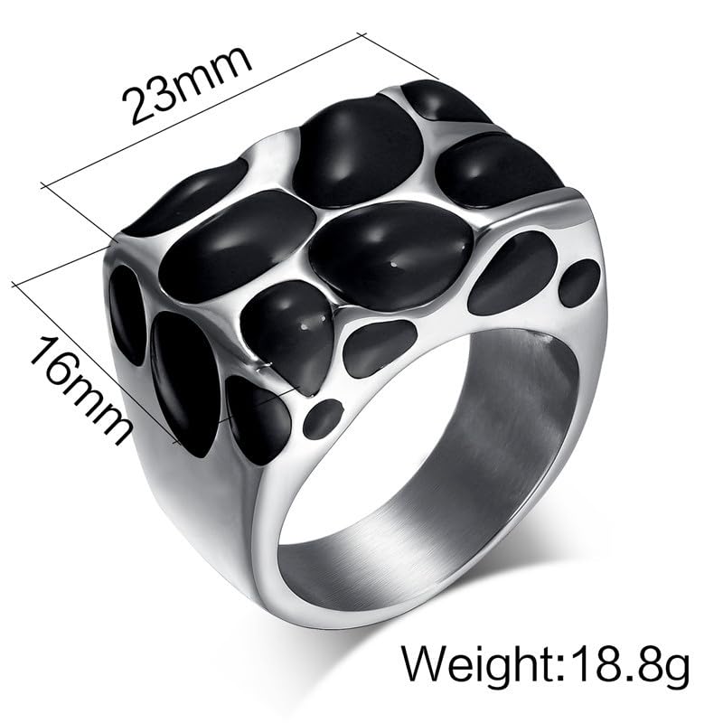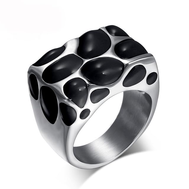 Generic - خاتم زفاف مطلي بالذهب عيار 18 قيراط من الستانلس ستيل مطلي بالذهب عيار 18 قيراط بلون اسود ومينا بلون اسود للنساء
