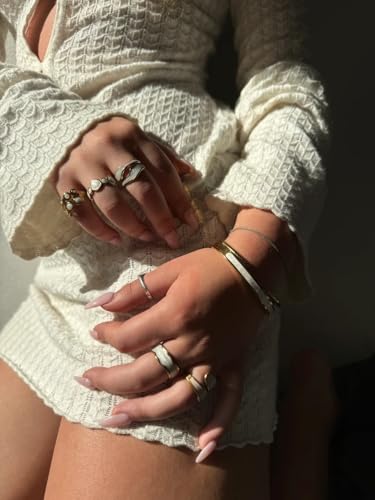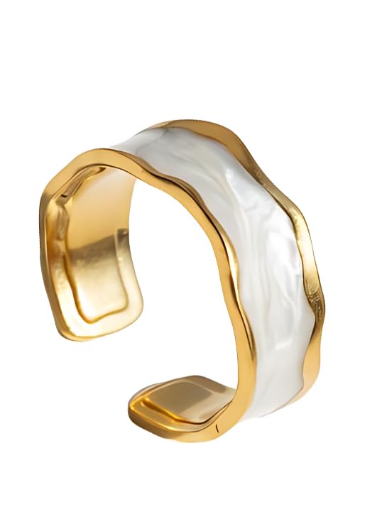Generic - خاتم ابيض بنمط بافيلون كوري هدية للنساء في يوم الموضة للزوجة والحبيب وافراد العائلة والأخت الصالحة من الستانلس ستيل مطلي بالذهب عيار 18 قيراط وعيد الحب وعيد الام - فتحة قابلة للتعديل