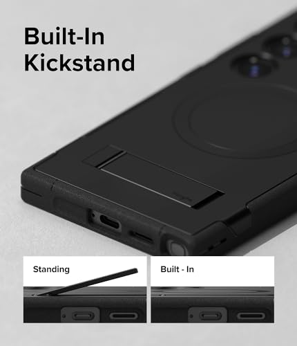 Ringke - جراب حماية من رينجكي اليس [متوافق مع ماج سيف] مصمم لموبايل سامسونج جالاكسي S24 الترا شبكة الجيل الخامس 5G مع حامل مغناطيسي قوي بفتحات دقيقة لعدسات الكاميرا - أسود