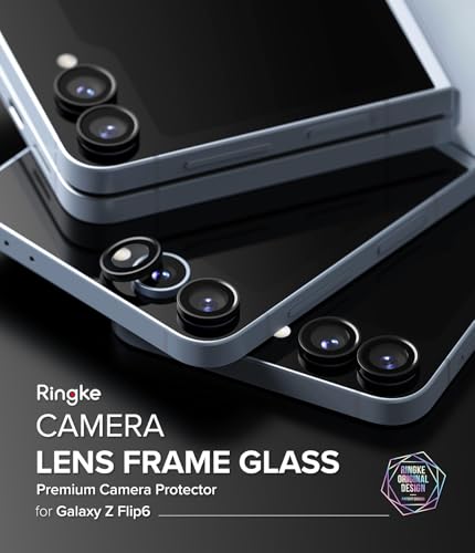 Ringke - رينجكي واقي زجاجي لاطار عدسة الكاميرا متوافق مع سامسونج جالاكسي Z فليب 6 2024 غطاء كاميرا مضاد للبصمات من الزجاج المقوى وطلاء لاصق خليط معدني الالومنيوم - اسود