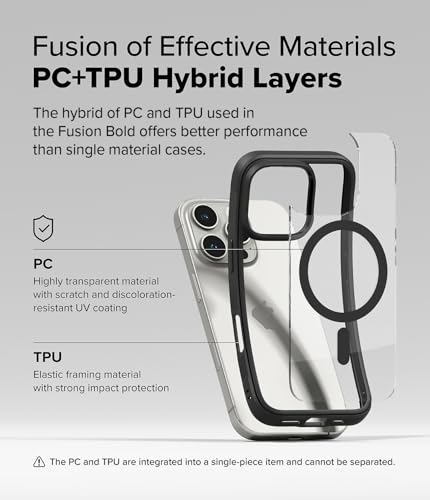 Ringke - جراب حماية فيوجن بولد مغناطيسي متوافق مع تقنية ماج سيف لموبايل ايفون 16 برو من رينجكي، جراب موبايل خلفي صلب شفاف مضاد للانزلاق والصدمات ومضاد للاصفرار للشاحن المغناطيسي/ اكسسوارات، لون أسود