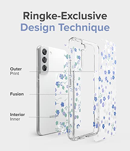 Ringke - جراب خلفي صلب شفاف مع ممتص للصدمات من البولي يوريثين الحراري بتصميم فيوجن وطبعة مشجرة للنساء والبنات متوافق مع موبايل سامسونج جالاكسي S22 بلس 5G (2022) من رينجكي - زهور برية