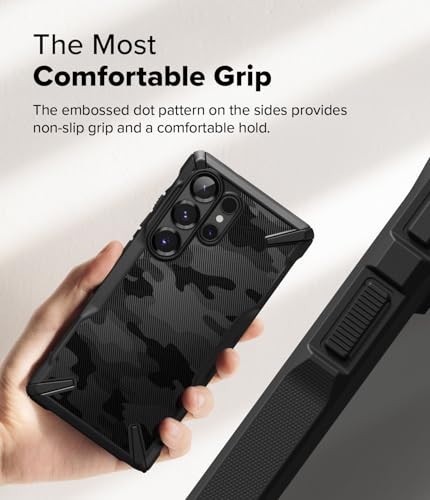 Ringke - جراب فيوجن اكس [زوايا أثقل تساعد الجهاز في السقوط على حوافه] من رينجكي، جراب متوافق مع سامسونج جالاكسي S25 الترا، غير قابل للانزلاق لسهولة الإمساك، مصمم بفتحات دقيقة للكاميرا (أسود مموه)