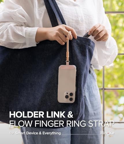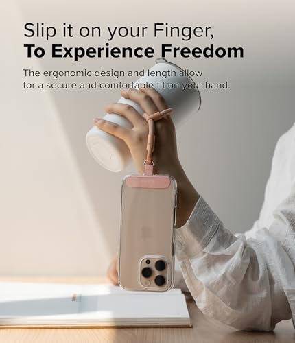 Ringke - حزام حلقي للإصبع مع وصلة بتصميم حبل قابل للتعديل ومضاد للسقوط للموبايل والجرابات وسلسلة المفاتيح والكاميرات وما إلى ذلك من رينجكي - برتقالي ووردي