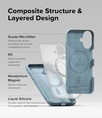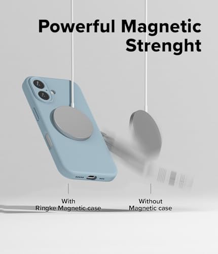 Ringke - جراب سيليكون مغناطيسي مصمم لموبايل آيفون 16 من رينجكي ومتوافق مع ماج سيف، جراب بملمس قطيفة لطيف وخفيف الوزن - أزرق