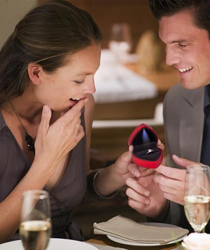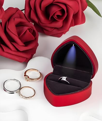 CartHome - صناديق خواتم، صندوق خواتم احمر للاقتراح، صندوق خواتم مع ضوء، مناسب لعرض الخواتم للازواج، مناسب للخطوبة وحفلات الزفاف والمفاجآت الرومانسية والمناسبات الخاصة