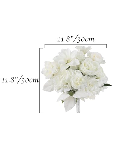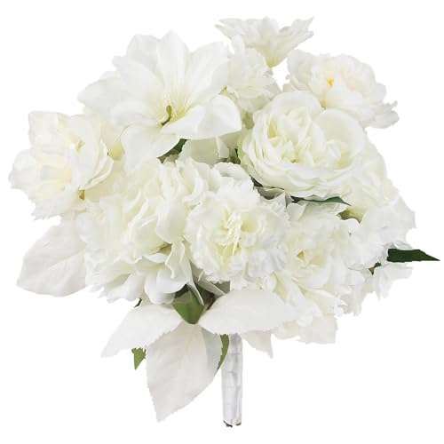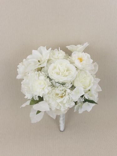 Rinlong - باقة زهور من الحرير الصناعي للعروس في حفلات الزفاف من رينلونج، أبيض