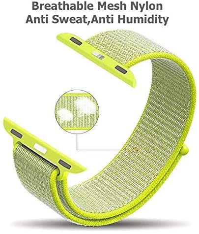 Mifan - سوار حلقي من النايلون لساعة ابل سلسلة 1 - 2 - 3 مقاس 42 ملم ميفان ممتاز بتصميم رياضي شبكي ناعم بمسامات للتهوية لون اصفر فاتح للبالغين الجنسين