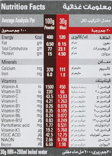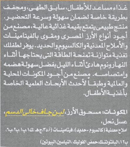 - المحتويات: أرز، وحليب، وفيتامينات وعسل نحل