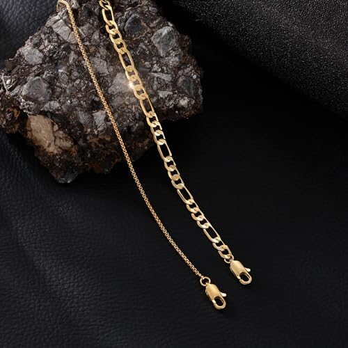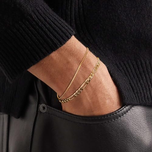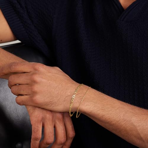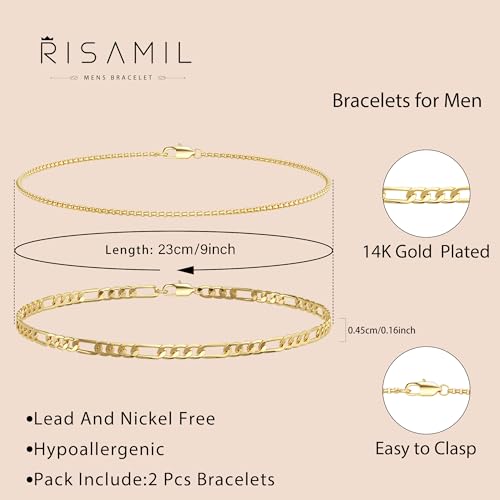 Risamil - سوار ذهبي للرجال من ريساميل - مجموعة أساور ذهبية للرجال من قطعتين مع صندوق وحلقة كوبية متوافرة بأطوال مختلفة (6.5/7/7.5/8/8.5/9 بوصة) سوار ذهبي للرجال، وسلسلة بحلقات كوبية ذهبية للرجال