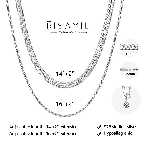 Risamil - قلادة ذهبية للنساء من ريساميل مطلية بالذهب عيار 14 قيراط / بطبقات فضية لا تسبب الحساسية مجوهرات هدية والفتيات فضة استرلينية بدون احجار كريمة