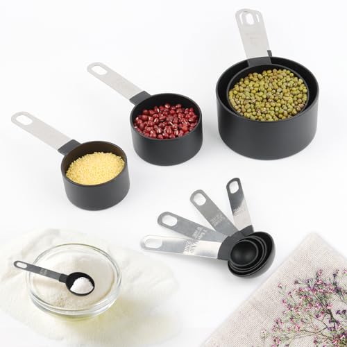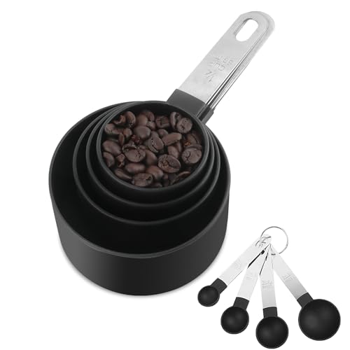 - تصميم فريد: مقبض الفولاذ المقاوم للصدأ منقوش بوحدات قياسية مرئية، والمقبض مصمم بأبعاد مريحة لضمان استخدام الحجم المناسب. تتضمن 8 أحجام مختلفة من أكواب ومعالق القياس الأمريكية لتلبية احتياجاتك اليومية.