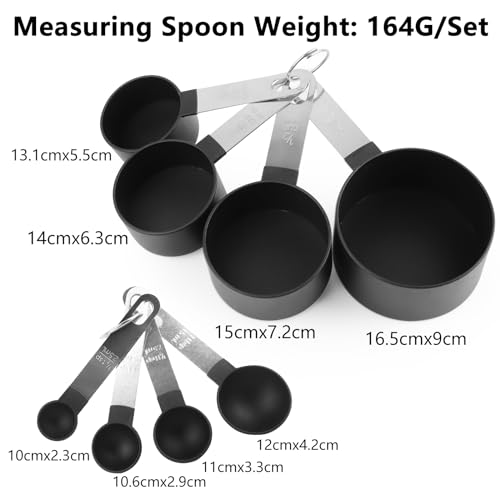 - مجموعة معالق القياس: تحتوي معالق القياس المصنوعة من الفولاذ المقاوم للصدأ على 4 معالق قياس و4 أكواب قياس. السعات هي 237 مل، 118 مل، 89 مل و 59 مل. المواصفات المختلفة تتيح لك معرفة معيار كمية المكونات بسهولة. مجموعة أكواب القياس البلاستيك ضرورية للمحترفين والطهاة والخبازين بدلاً من موازين المطبخ.