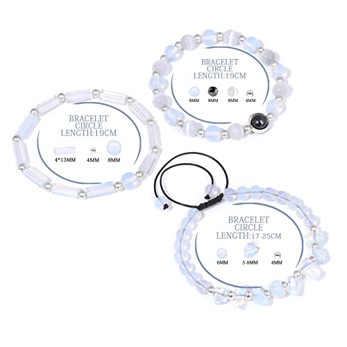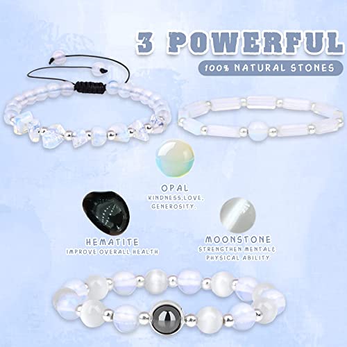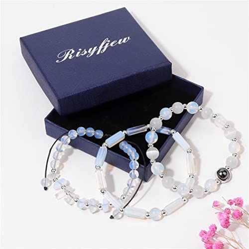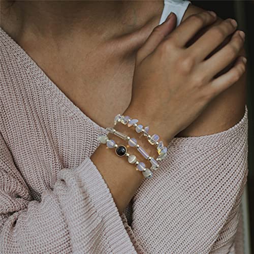 Risyfjew - أساور جمشت للنساء من ريزيفجيو، سوار خرز من الأحجار الطبيعية العلاجية لتخفيف التوتر والقلق وكريستالات البطيخ وحجر القمر والأوبال والهيماتايت، مجوهرات قابلة للتمدد، هدية للنساء