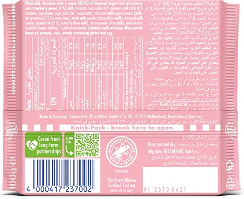 Ritter Sport - بار شوكولاتة بطعم زبادي بالفراولة من ريتر سبورت، 100 جرام
